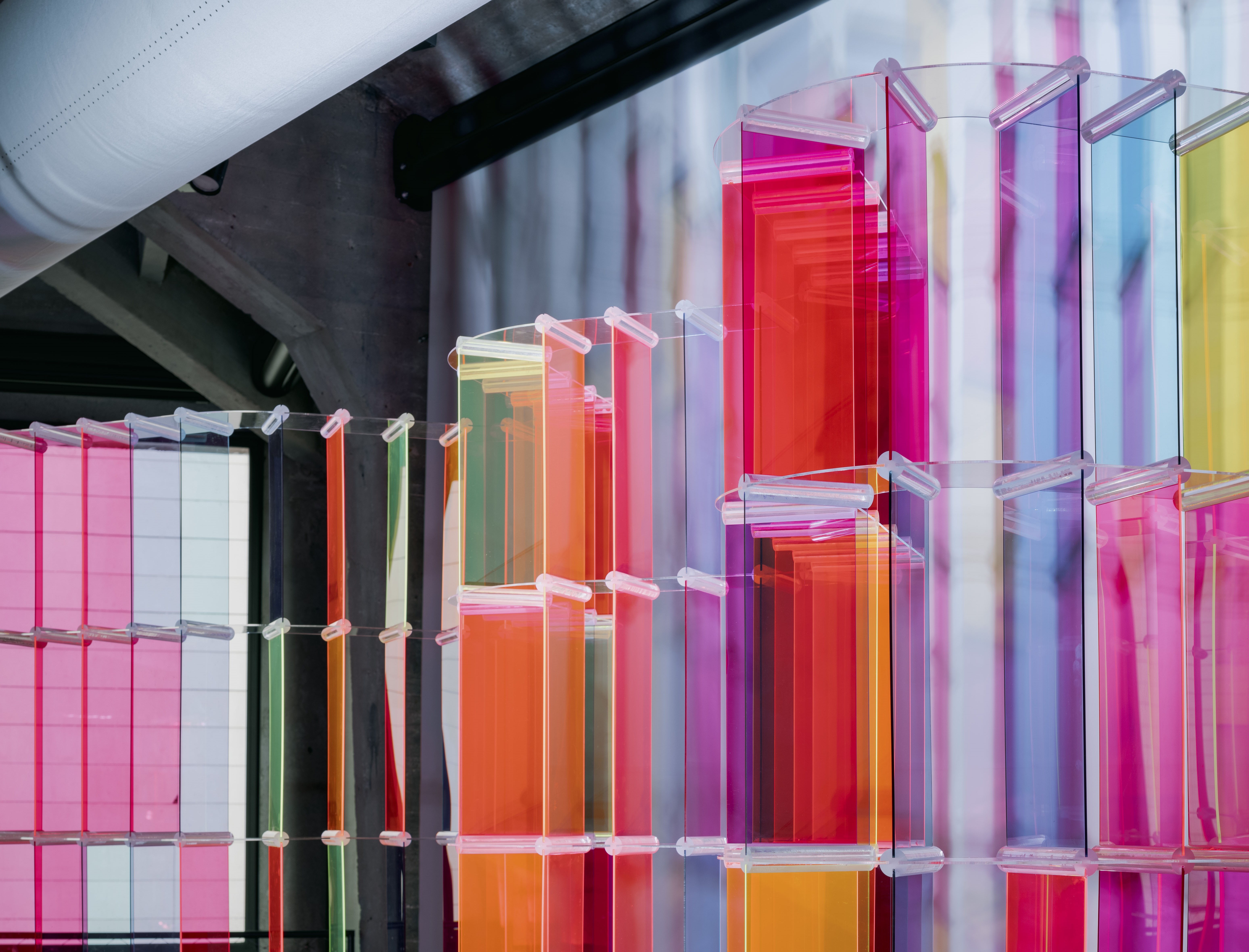 Alegría es la pieza diseñada por Belén Moneo para la exposición 10 Emociones, 10 Rosas de Solán de Cabras. Esta exposición tenía como objetivo dar visibilidad a las distintas emociones que atraviesan los pacientes de cáncer de mama y sus familias a lo largo de todo el proceso de la enfermedad. Alegría es un caleidoscopio, un clímax, un sumatorio de las emociones que se han sucedido durante la enfermedad y que, ahora, con la esperanza de la recuperación, explotan. Alegría actuará como el marco expositivo de esta tercera edición de Mujer x Mujer.